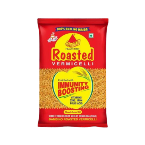 Bambino Roasted Semiya is a quick and convenient option for making delicious vermicelli-based dishes like upma, kheer, or pulao. Pre-roasted to perfection, this 400 GM pack saves you time while ensuring the perfect texture and taste in every dish. Whether you're preparing a savory or sweet recipe, Bambino Roasted Semiya is the ideal choice for hassle-free cooking with consistent results.