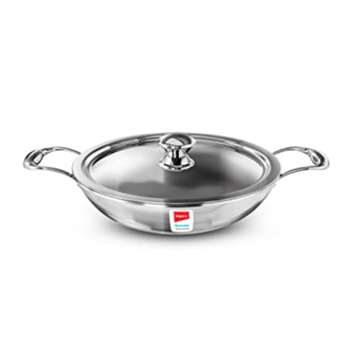 High-quality stainless steel kadai pan, perfect for versatile cooking.